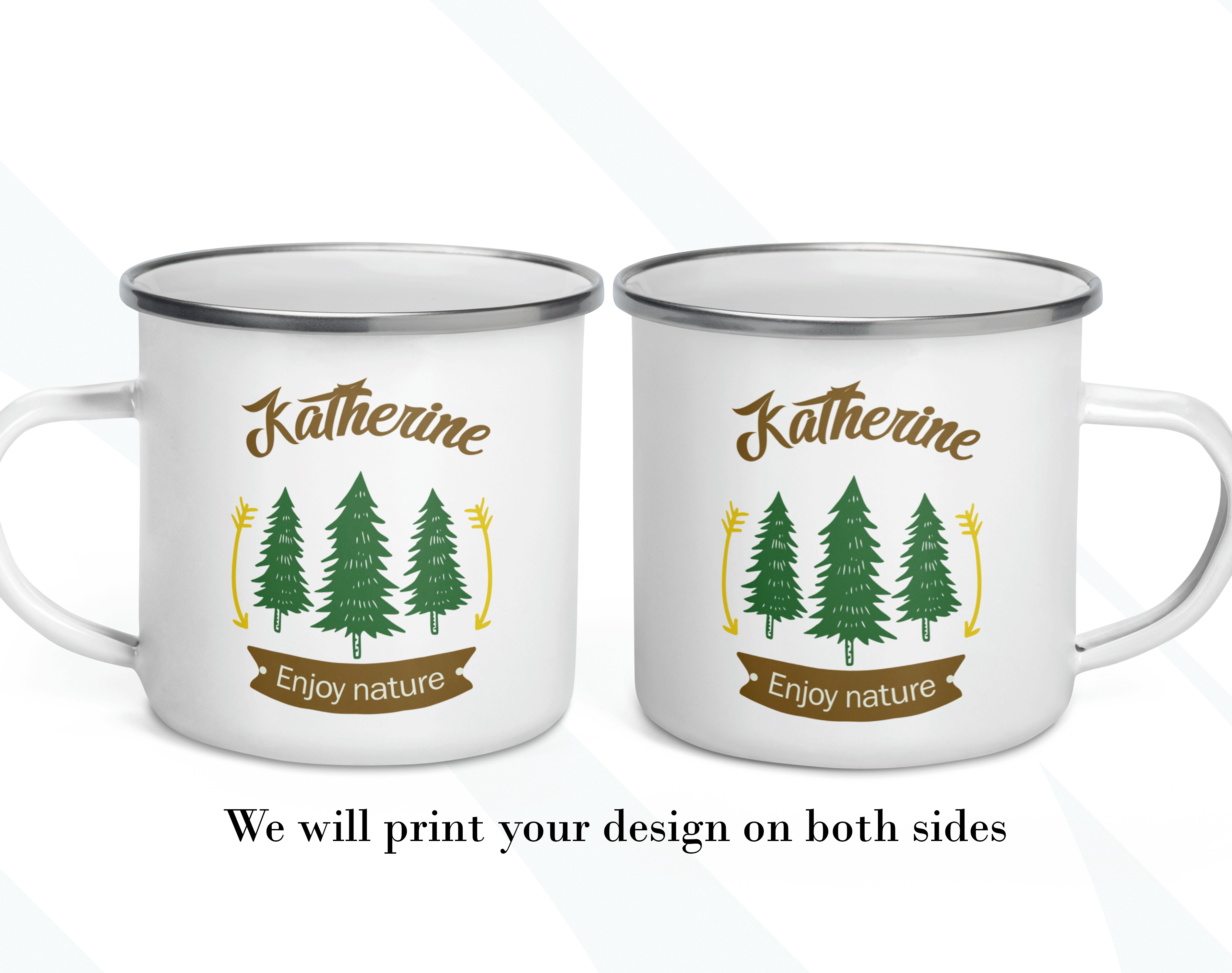We will send you a preview of your camping mug within 24 hours. After that, you have 48 hours to confirm the preview. If we don’t hear back from you, we will print out your mug as in the preview without an option for changes. NOTE: PLEASE CHECK YOUR SPAM FOLDER.