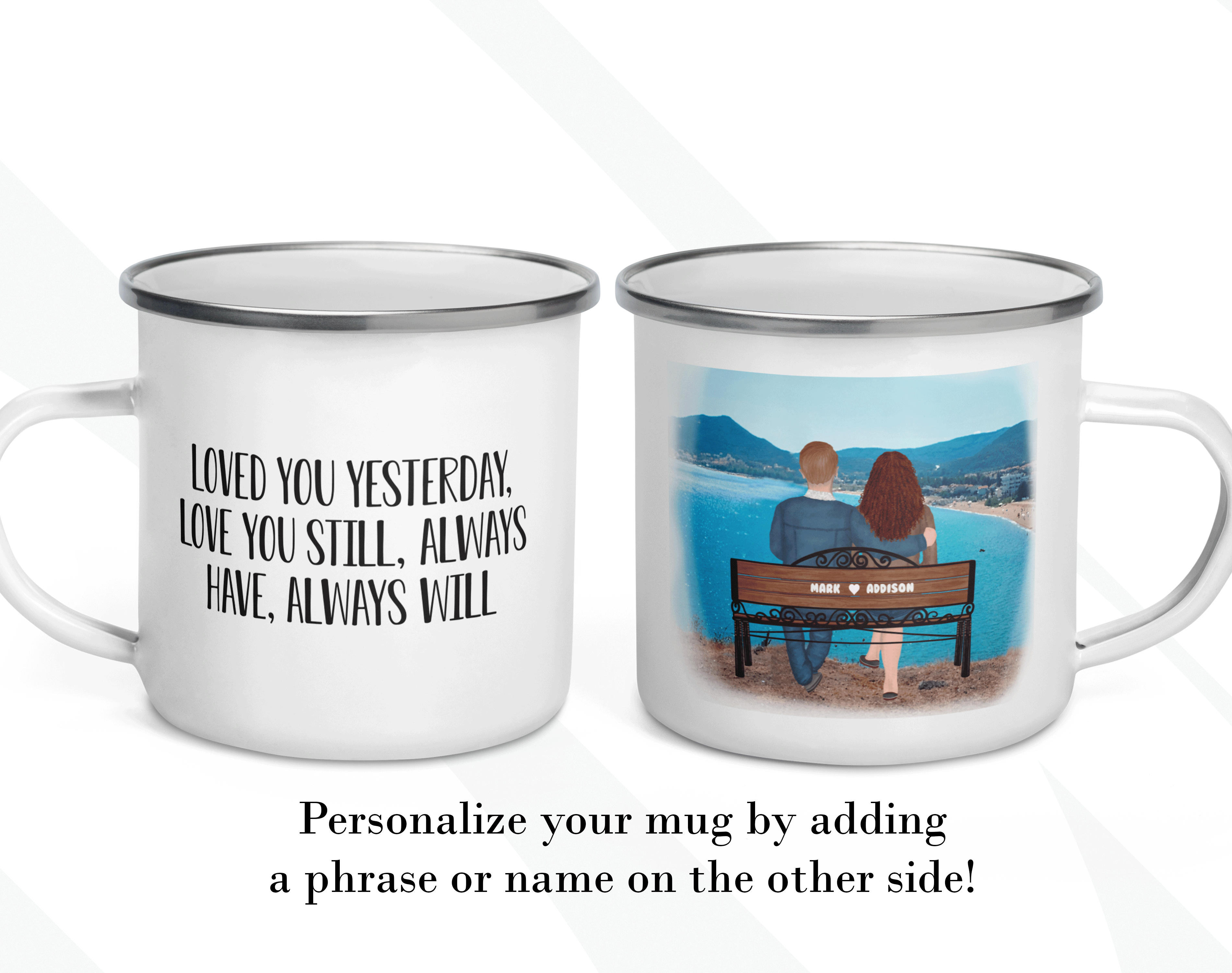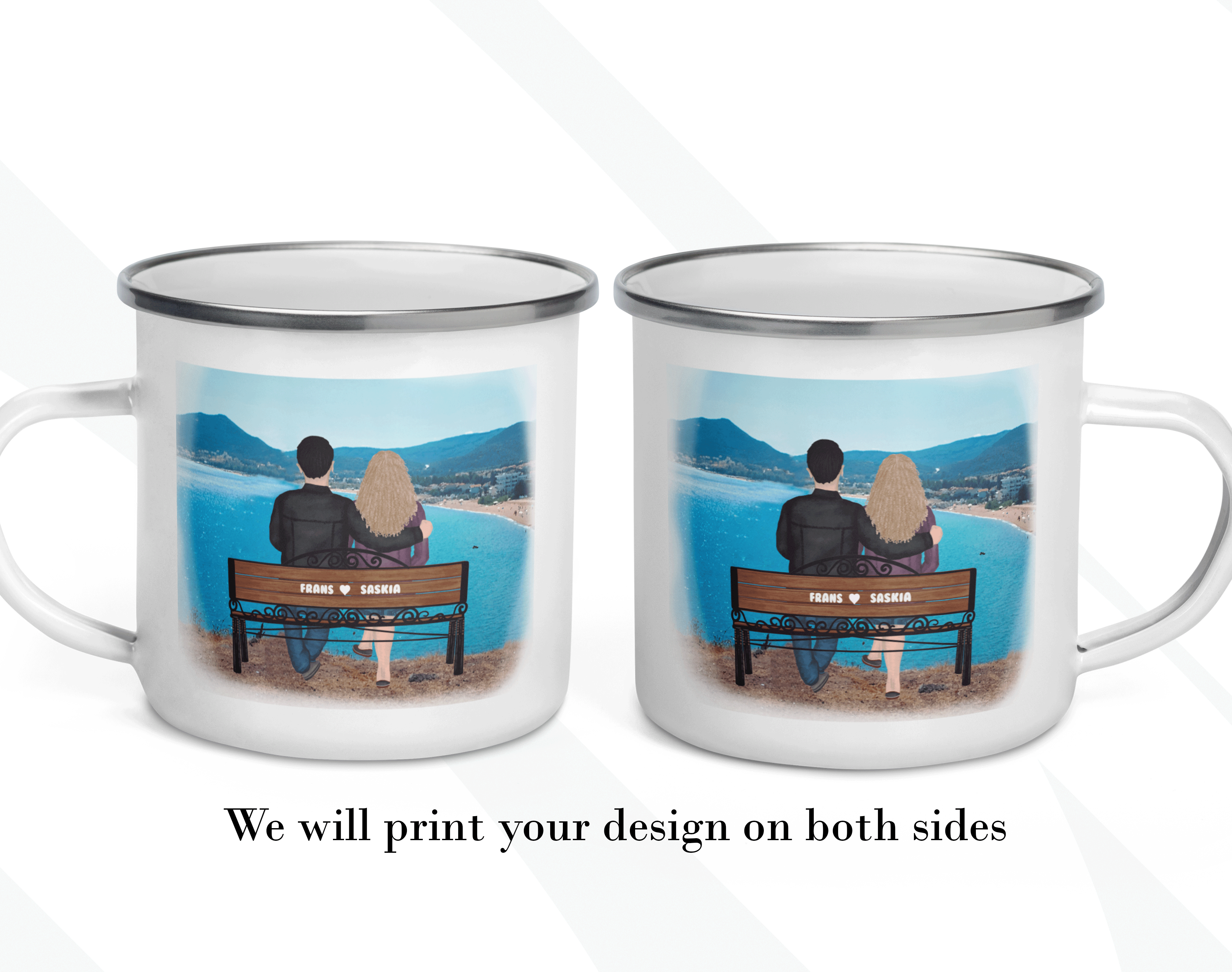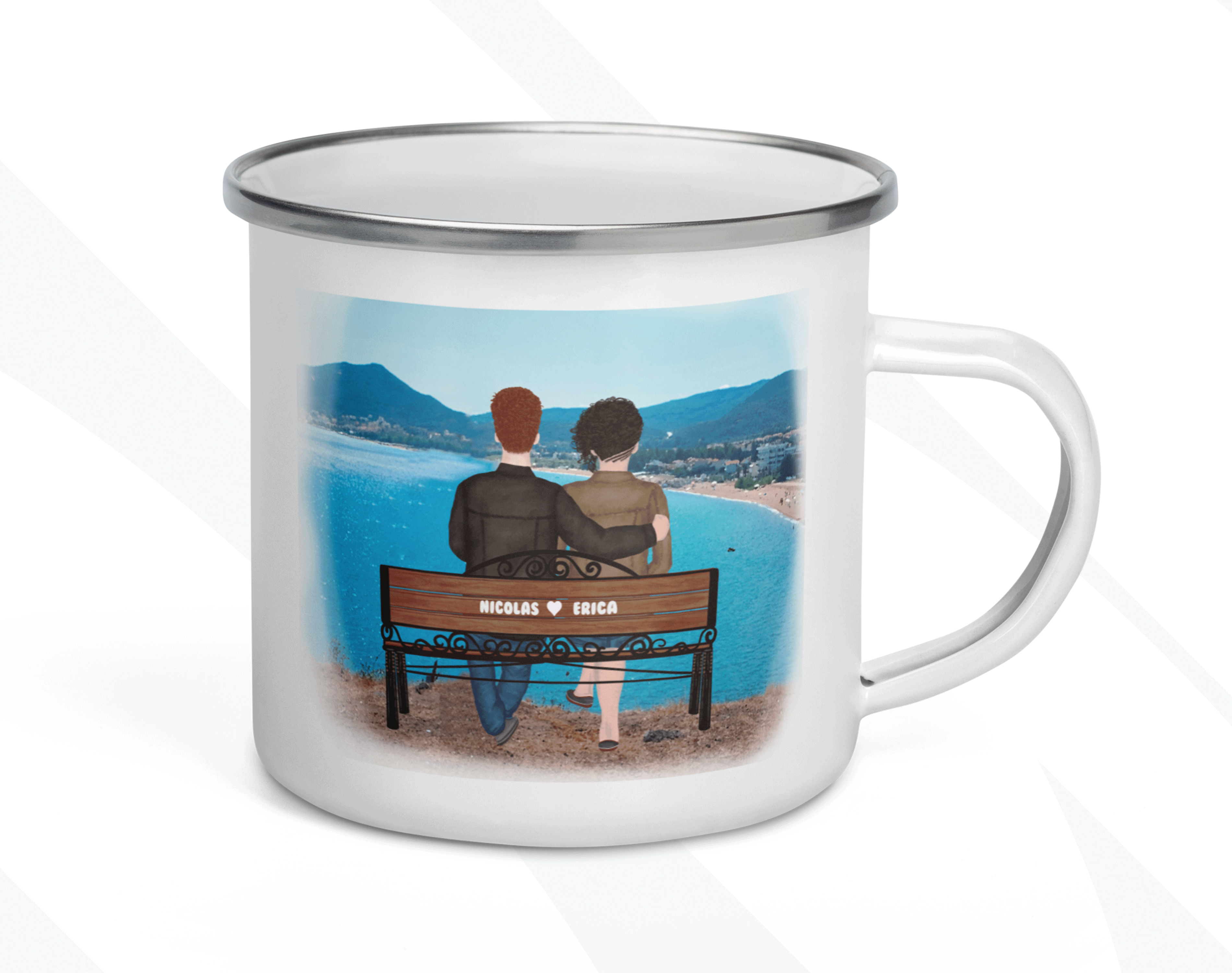 Couples Bench Mug, DIY Mug, Customized Mug, Enamel Mug