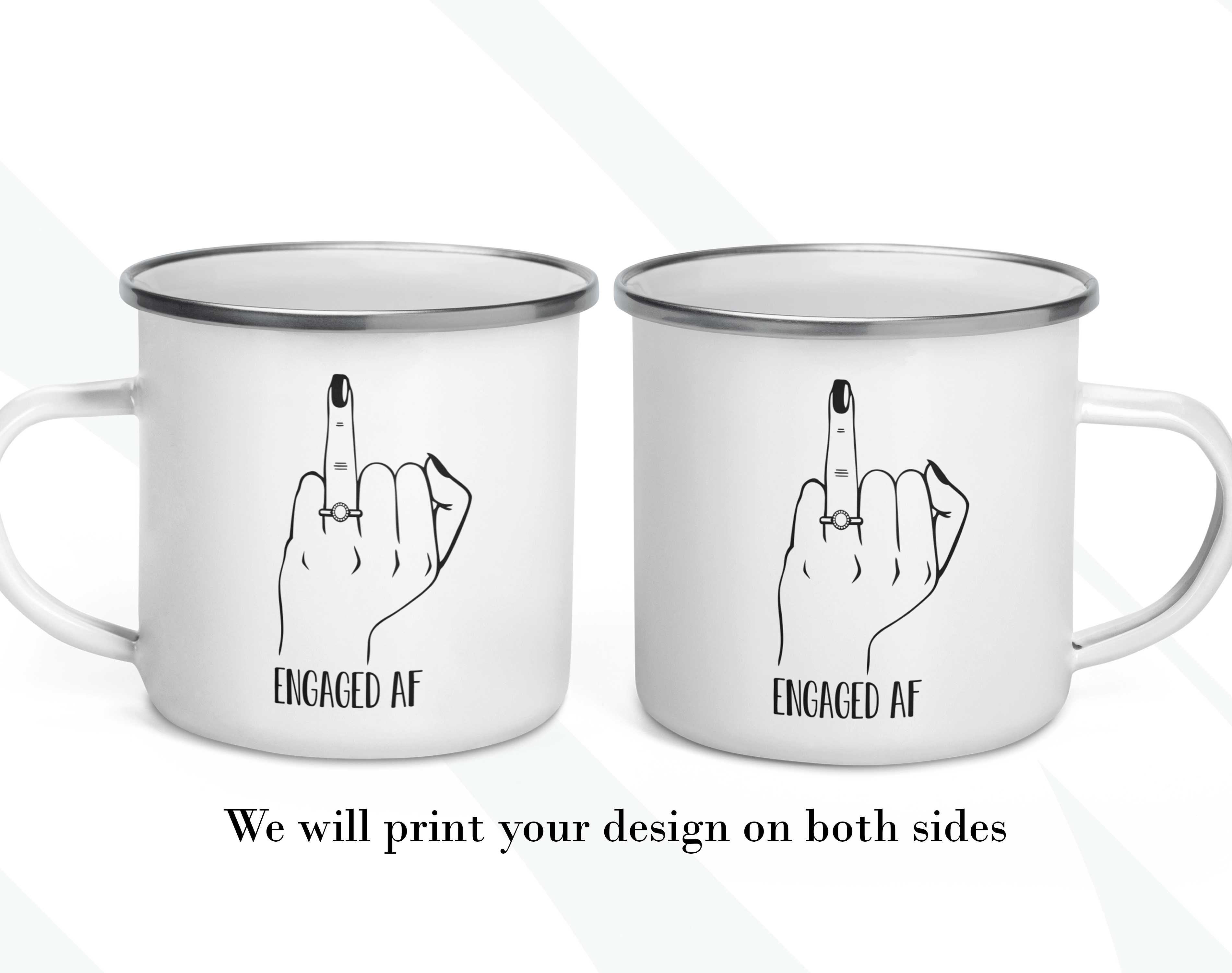 We will print your wedding ring finger mug on both sides by default. You can put a name or phrase on the mug’s back, as in the pictures. If you add text to the mug’s back, please let us know your preferred font number (the options are on the pictures). Please help us by providing as much information as possible in the personalized text box; we will take care of the rest! It’s your customized mug, so you can design your gift for the bride as you wish!