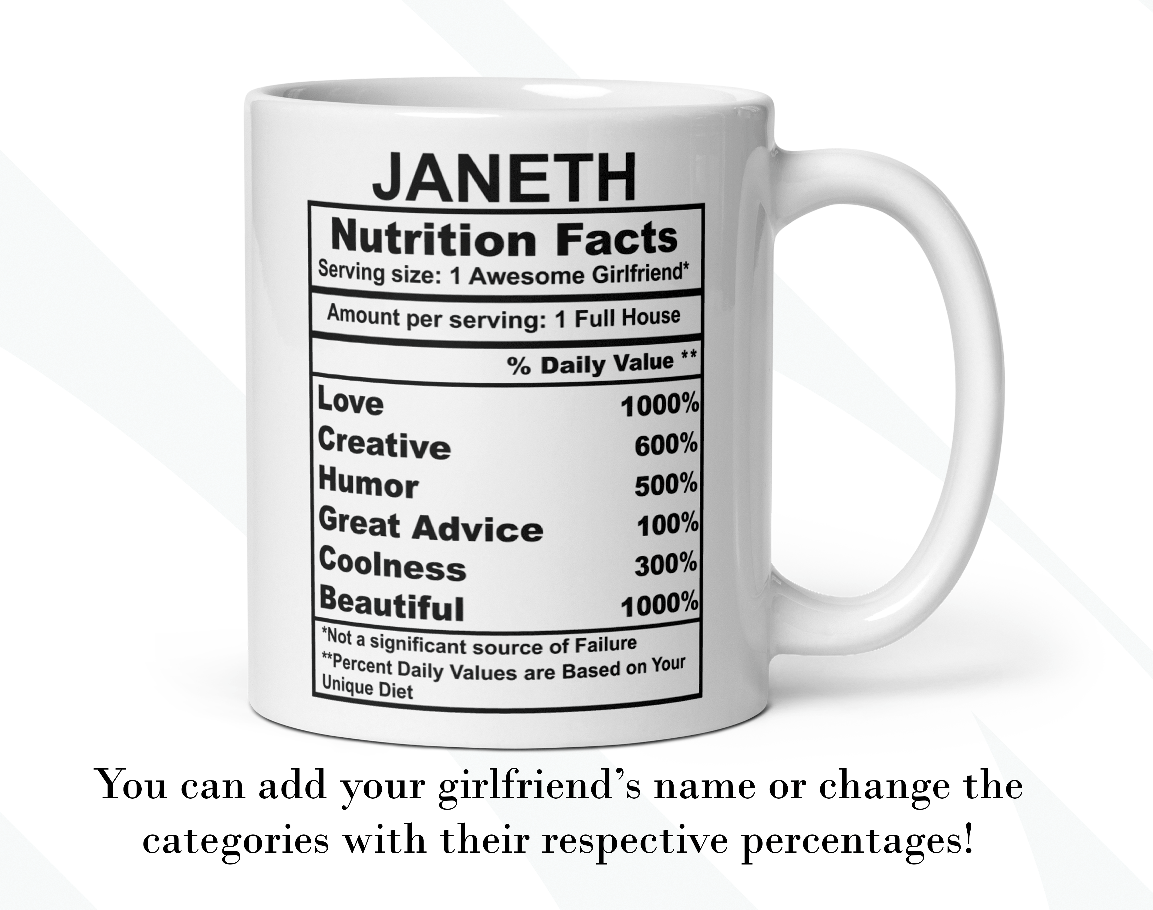 Girlfriend Nutrition Facts Mug, Personalized Mug, Ceramic Mug