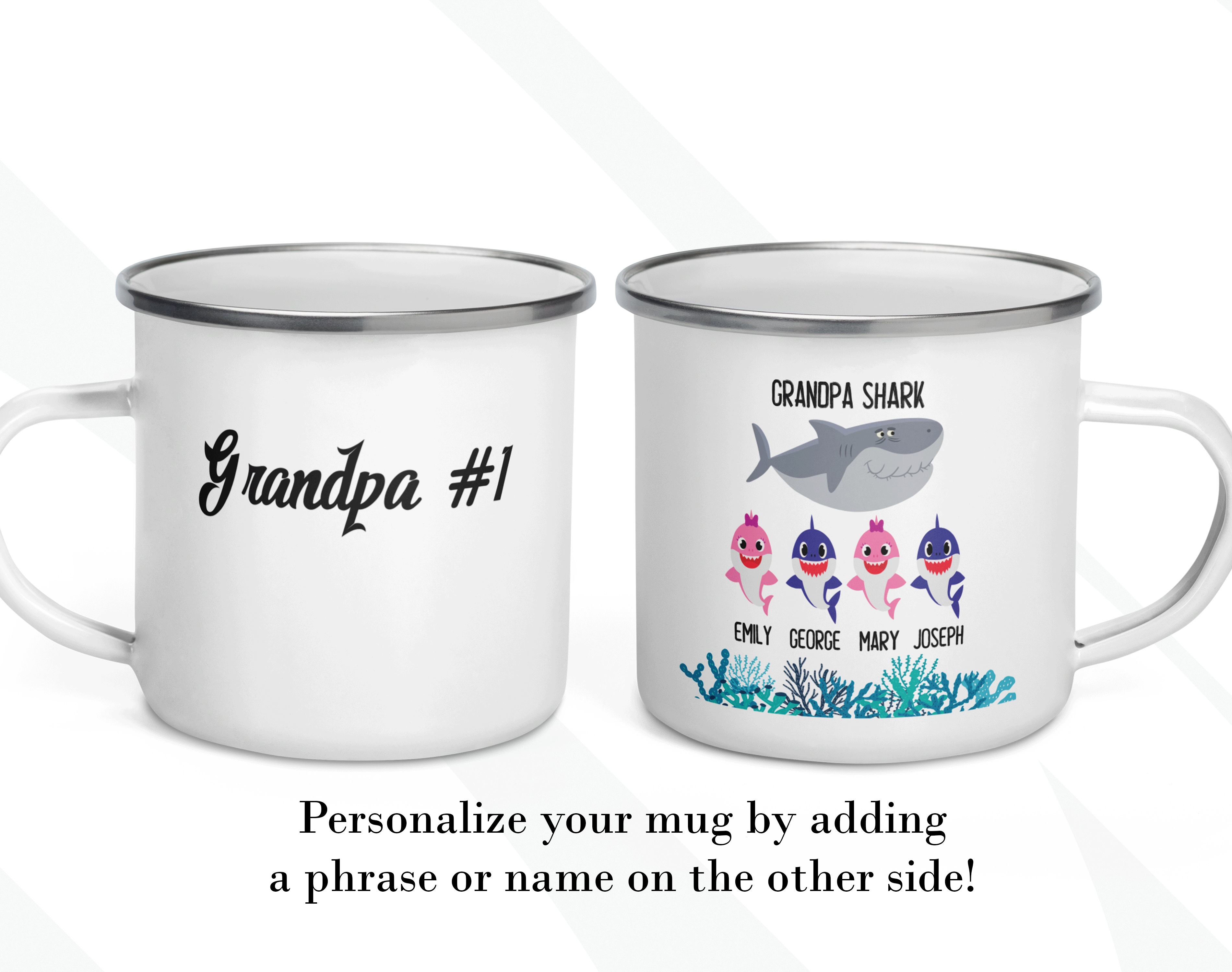 This grandpa shark personalized mug is a great funny gift for Grandpa! This shark mug is an excellent gift and a fantastic idea to make your grandpa smile whenever he serves in his tea or coffee mug!