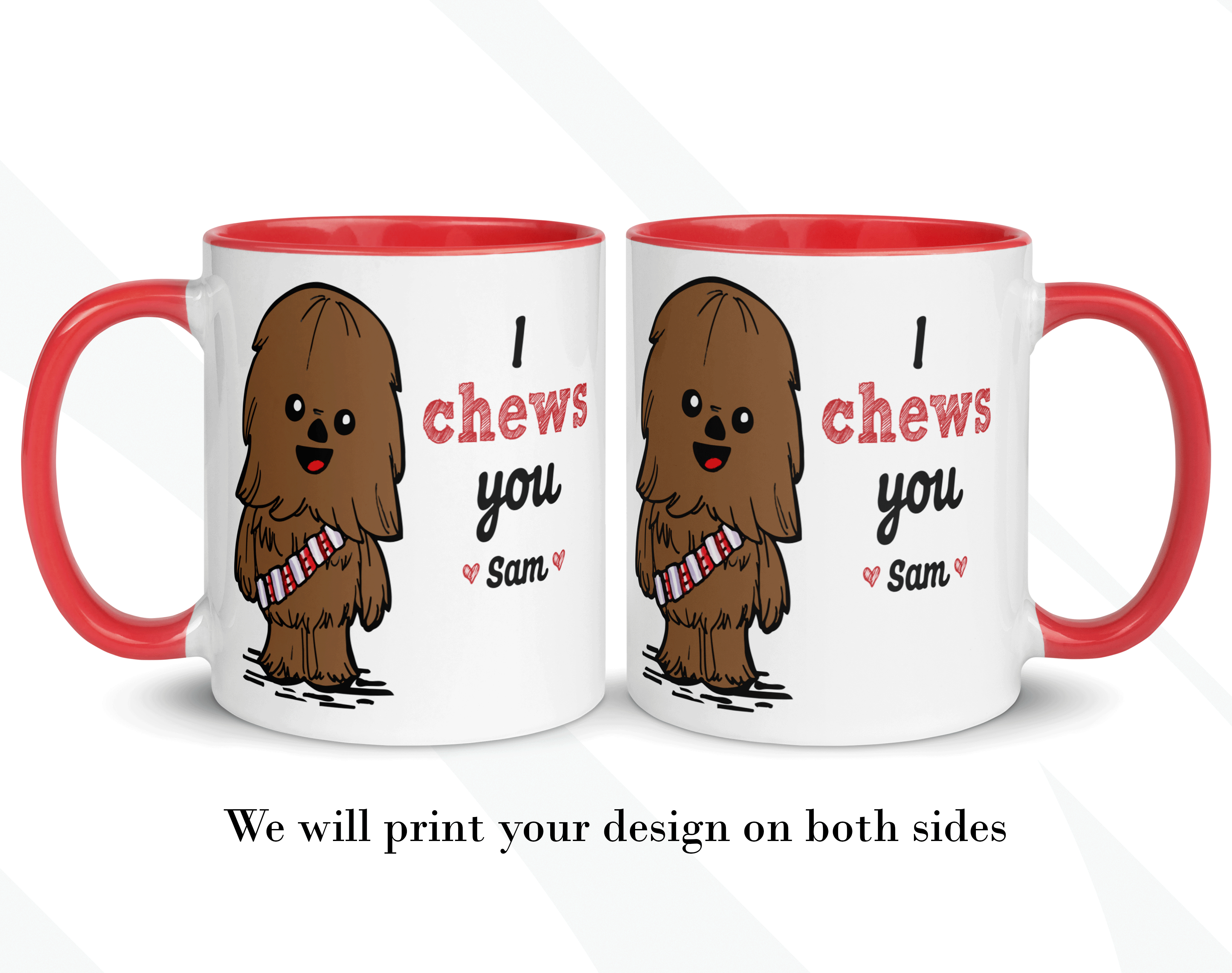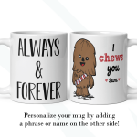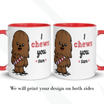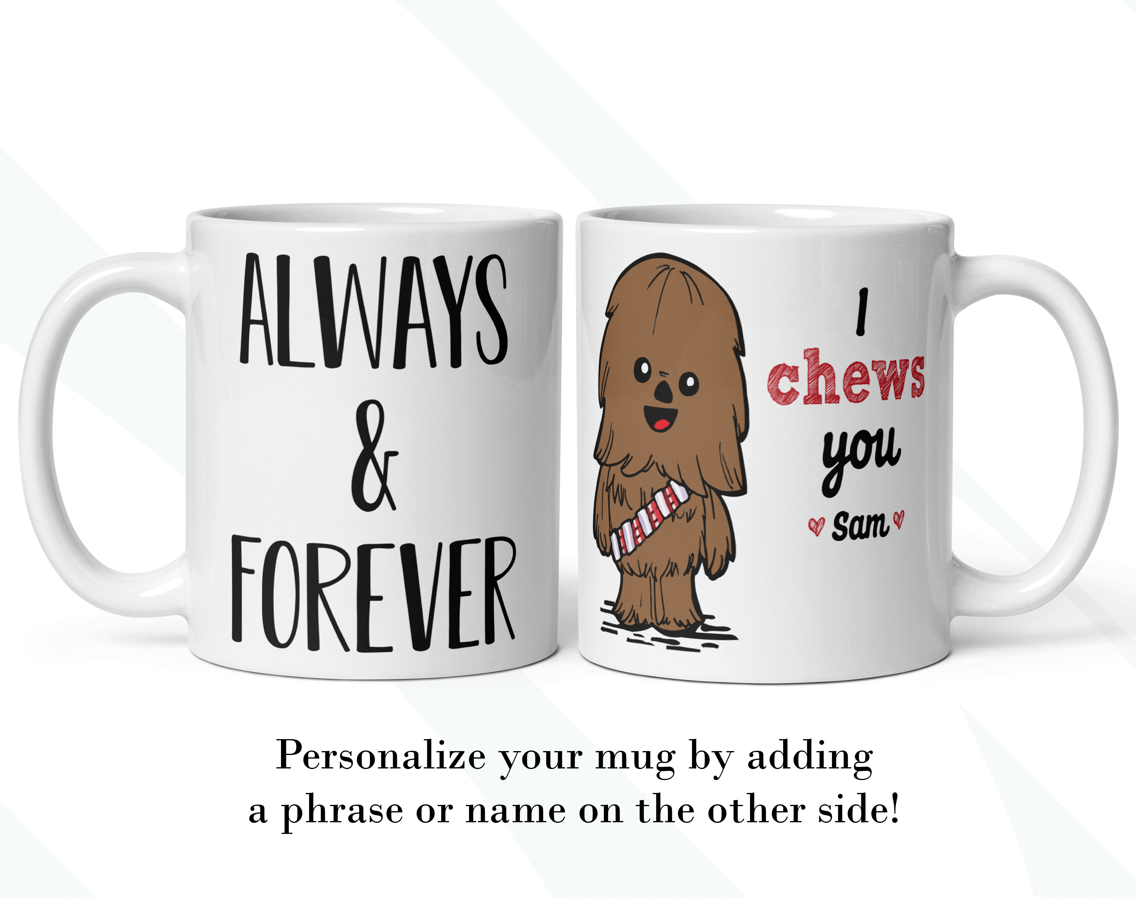 Our “I chews you” quote mug is a perfect Valentine’s gift for any Star Wars fan! Our Chewbacca mug could also be a unique anniversary gift, Valentine’s Day gift, birthday gift, or ideal for any special occasion for you!