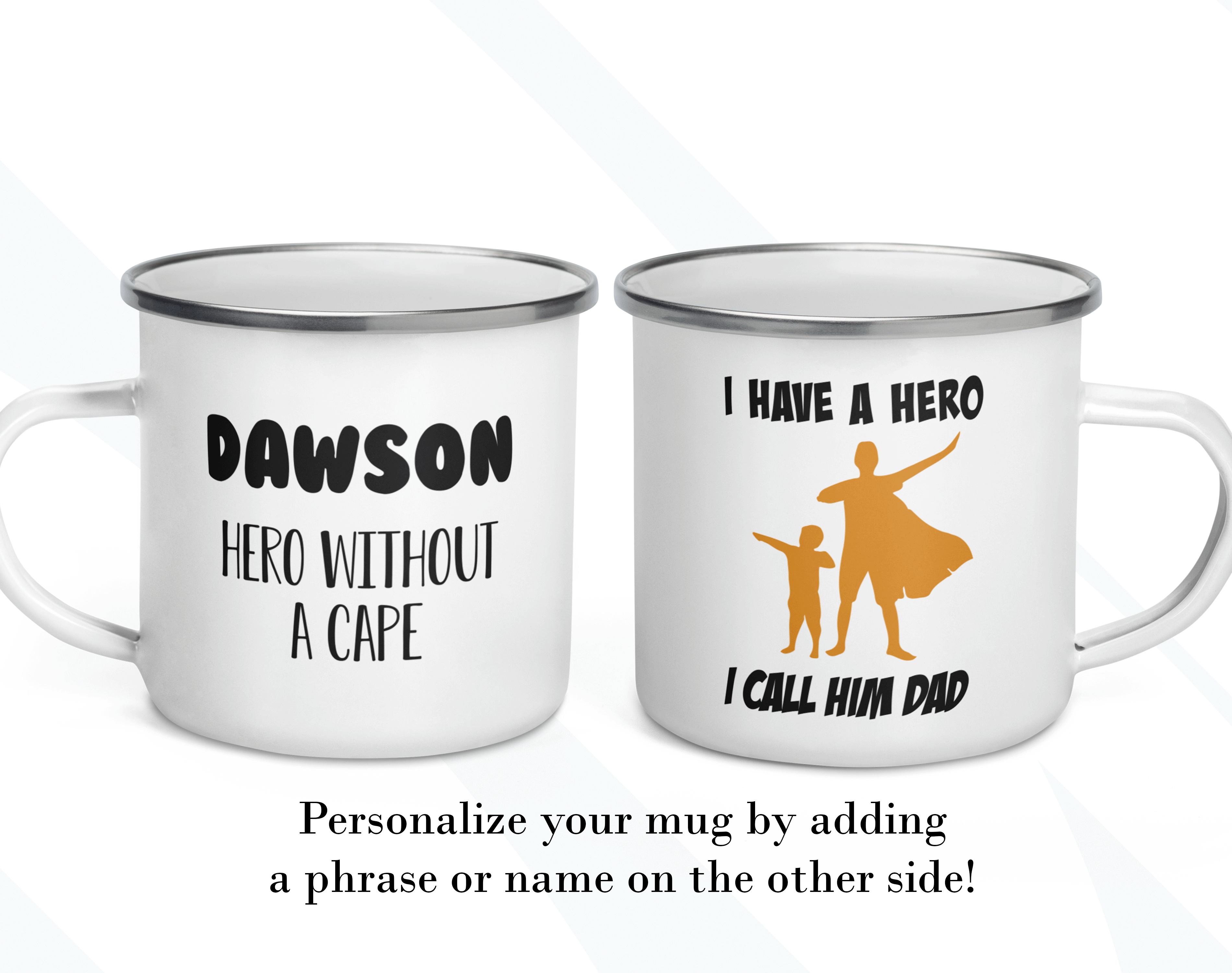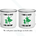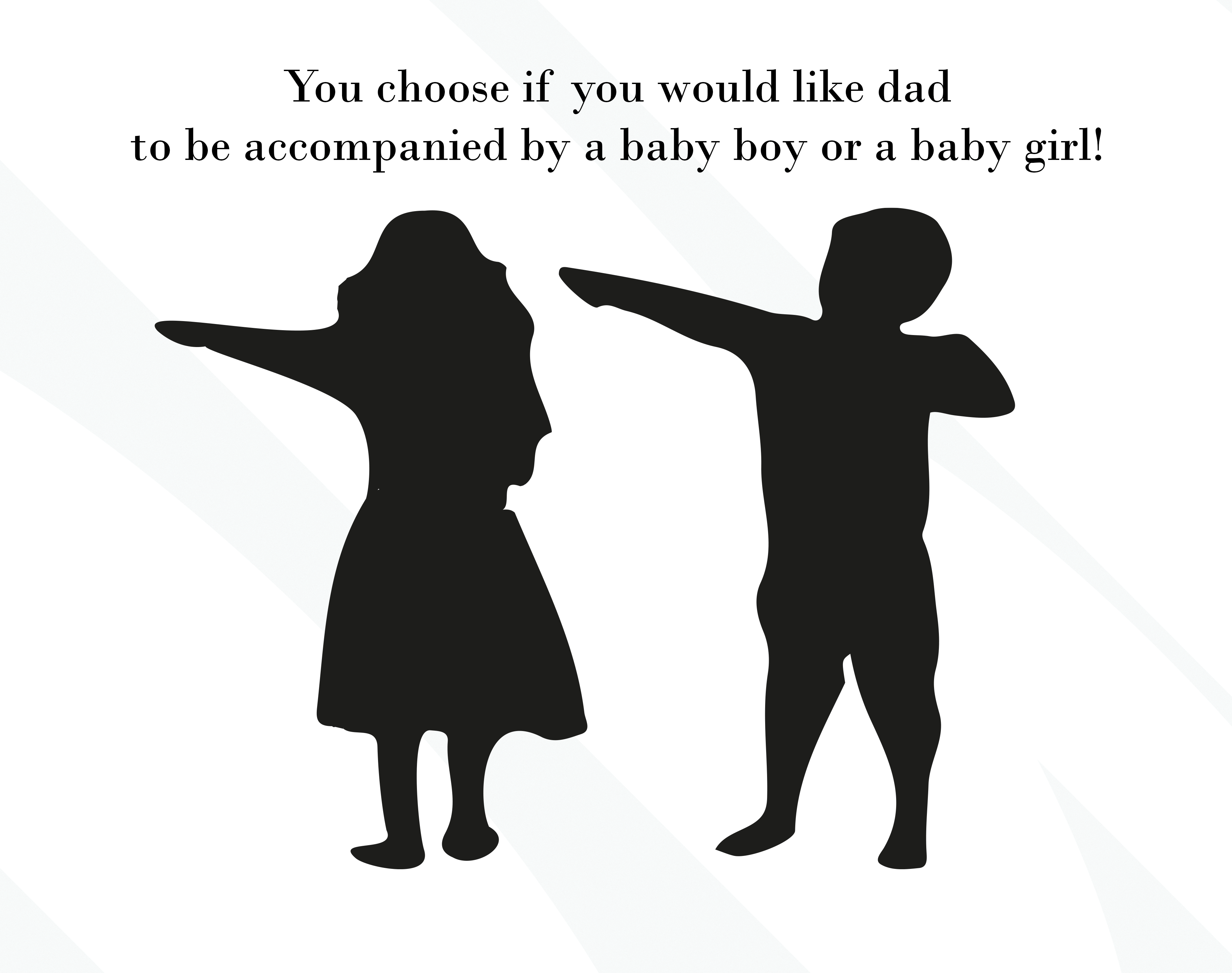 You choose if you want him to be accompanied by a baby boy or girl and the design color! By default, we will print the main design on both sides of the mug. You can put a name or phrase on the mug’s back, as in the pictures. Please help us by providing as much information as possible in the personalized text box; we will take care of the rest. If you add text, please let us know your preferred font number (the options are on the pictures). It’s your father’s gift, so you can design your personalized mug as you wish!