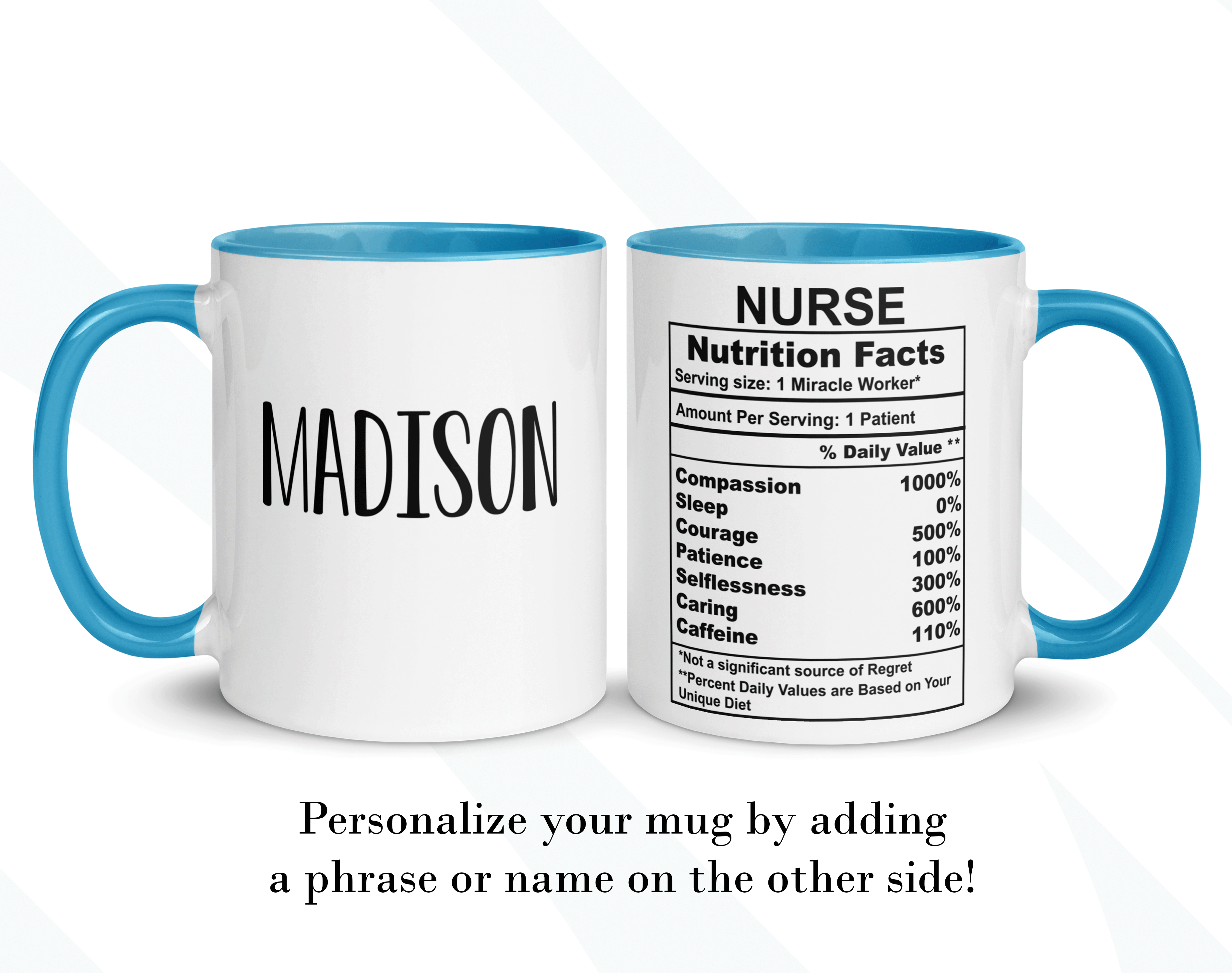 This Nurse Nutrition Facts mug is an excellent custom gift for an out-of-this-world nurse! It will put a big smile on them every time they serve in their mug, making this a perfect gift! This personalized mug could be a great medicine graduation gift!