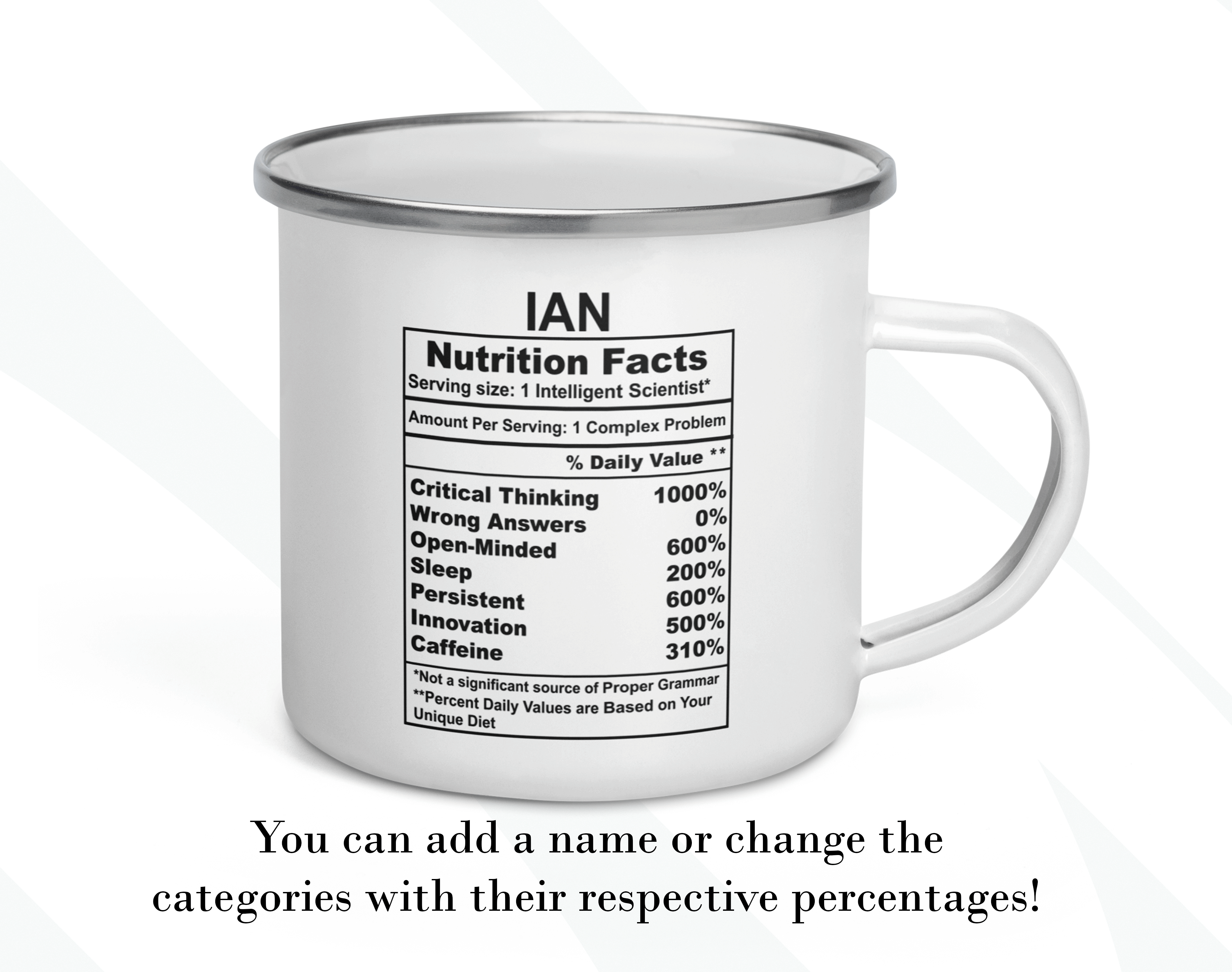 Scientist Nutrition Facts, Customized Mug, Enamel Mug