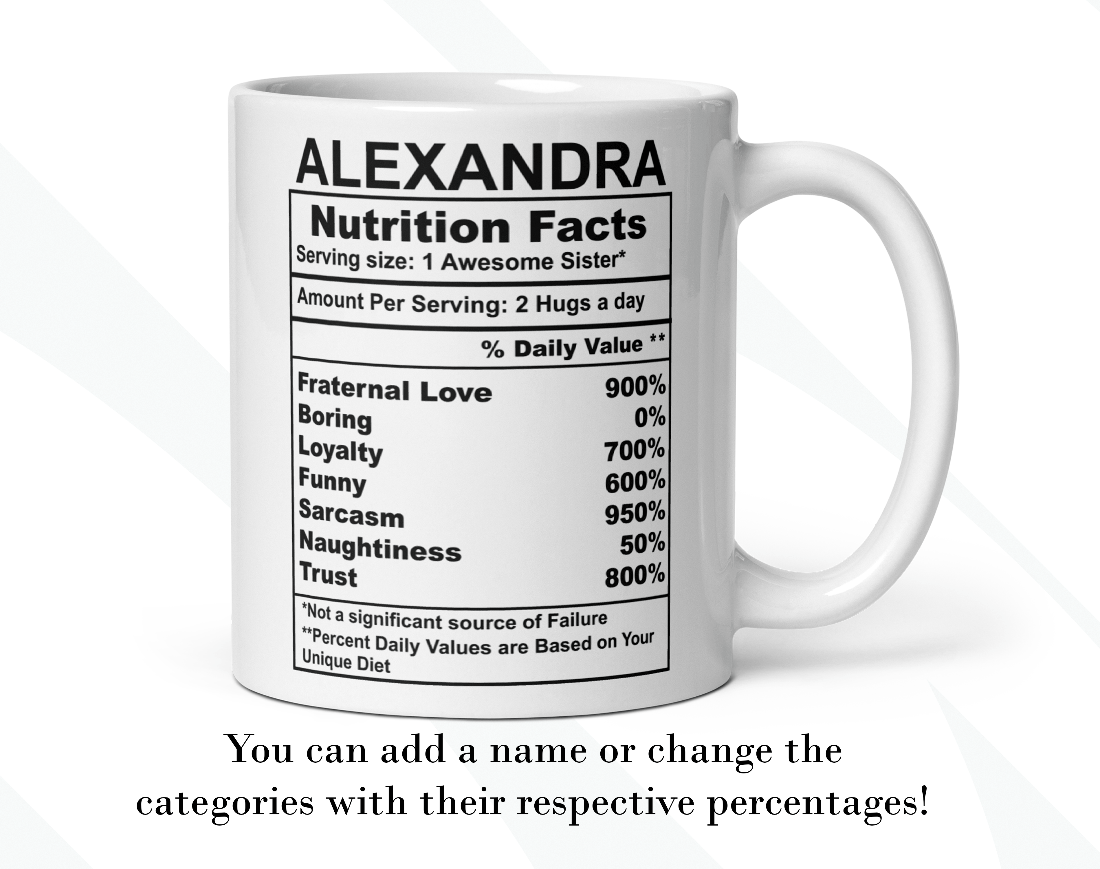 Sister Nutrition Facts Mug, Personalized Mug, Ceramic Mug
