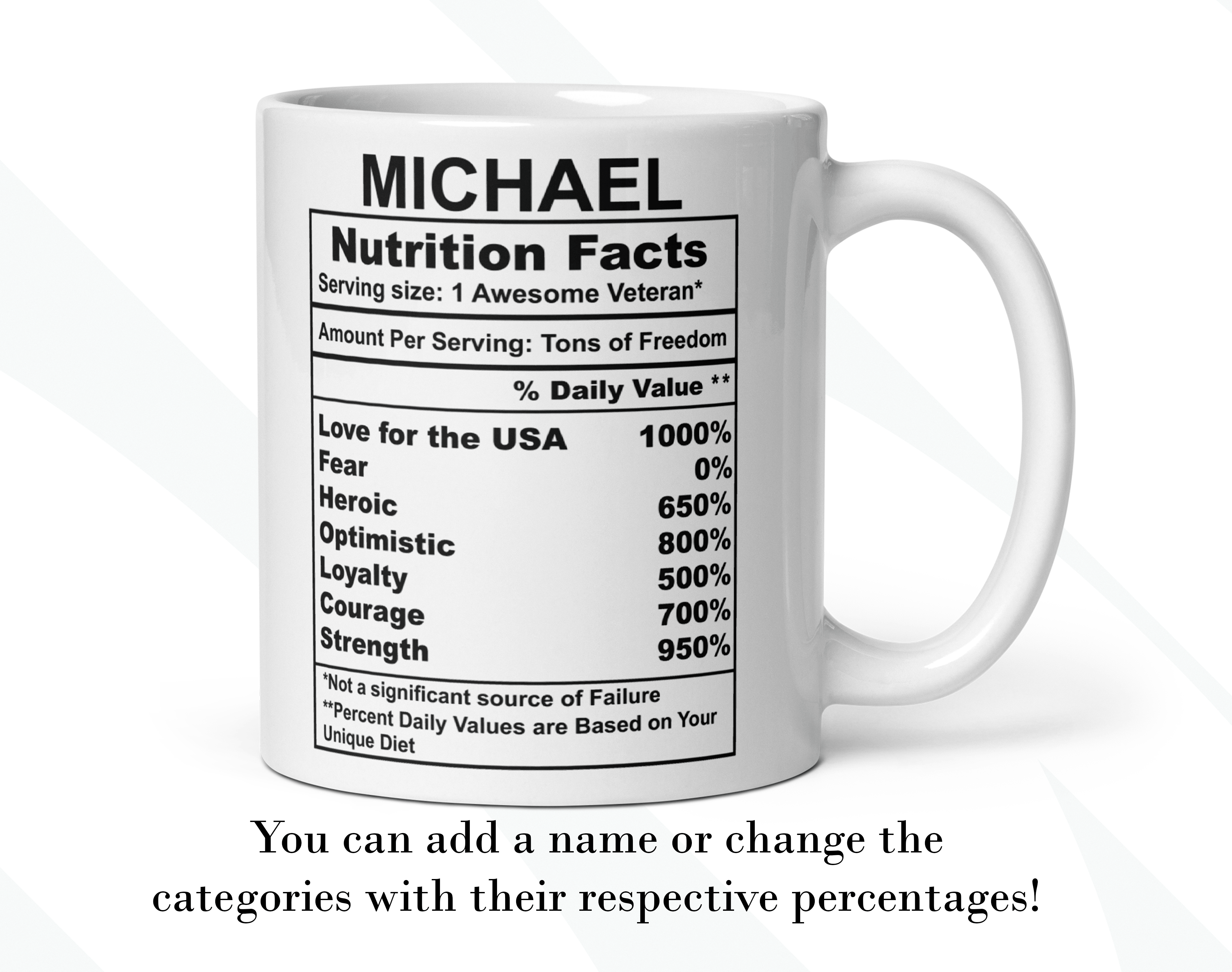 Veteran Nutrition Facts, Personalized Mug, Ceramic Mug