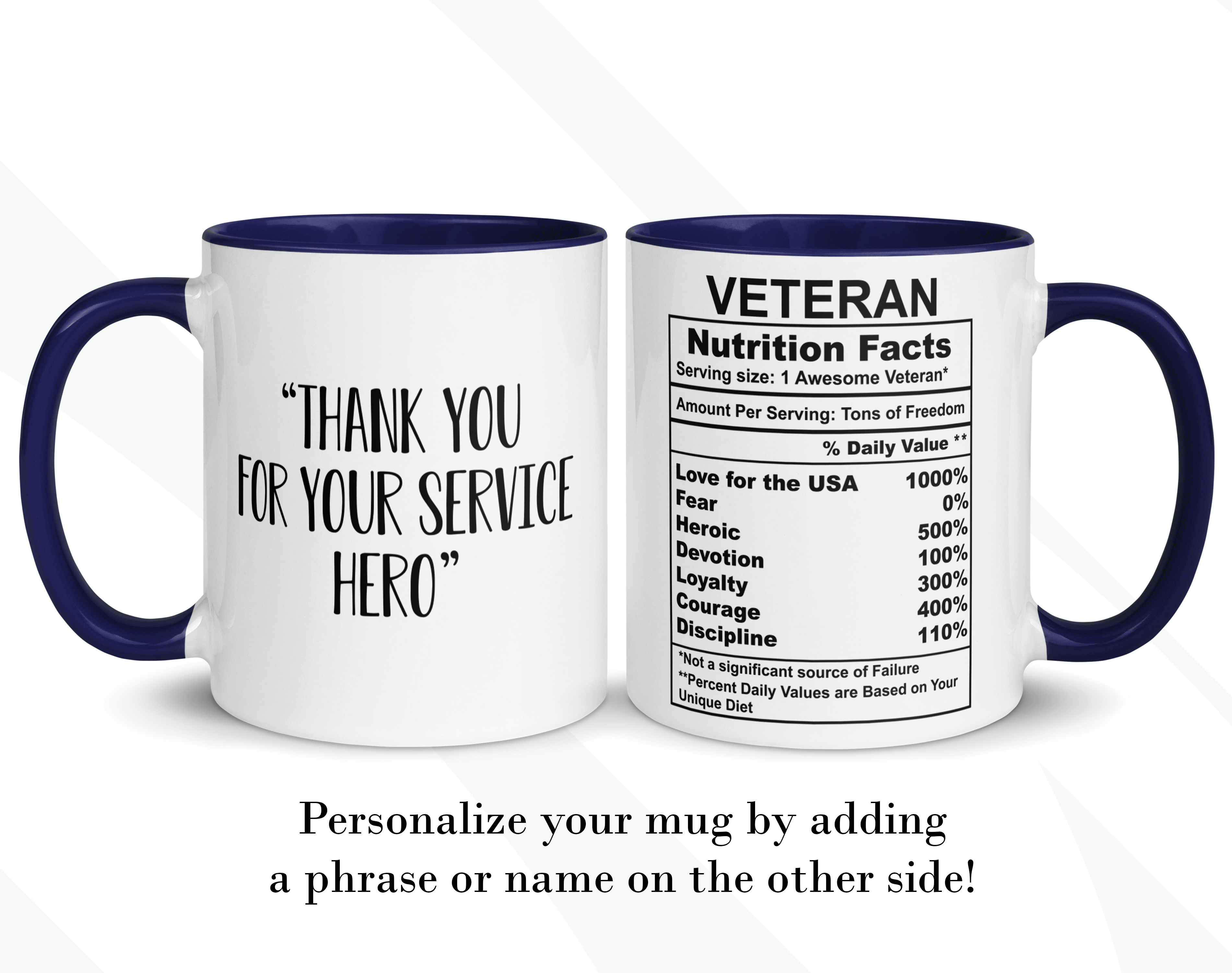 This veteran nutrition facts mug is an excellent patriotic gift! This custom gift will put a big smile on your loved heroes every time they serve in their mug! It could be an ideal welcome-home gift!