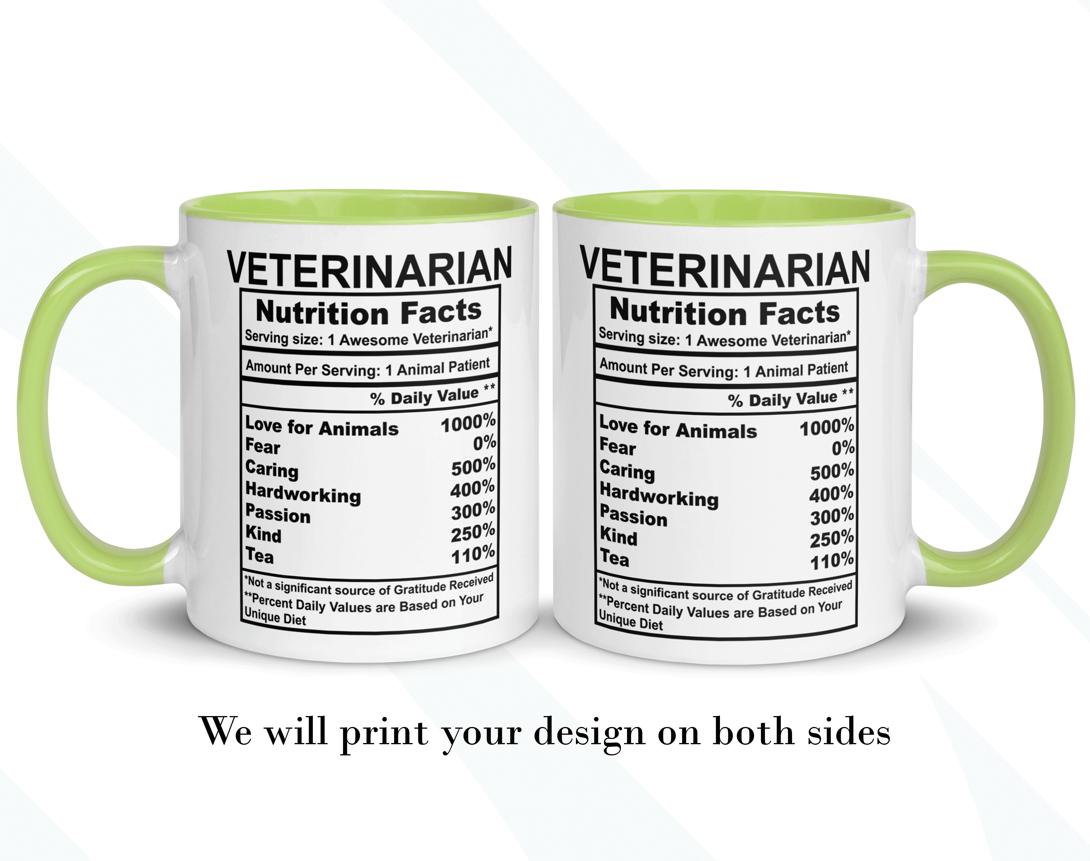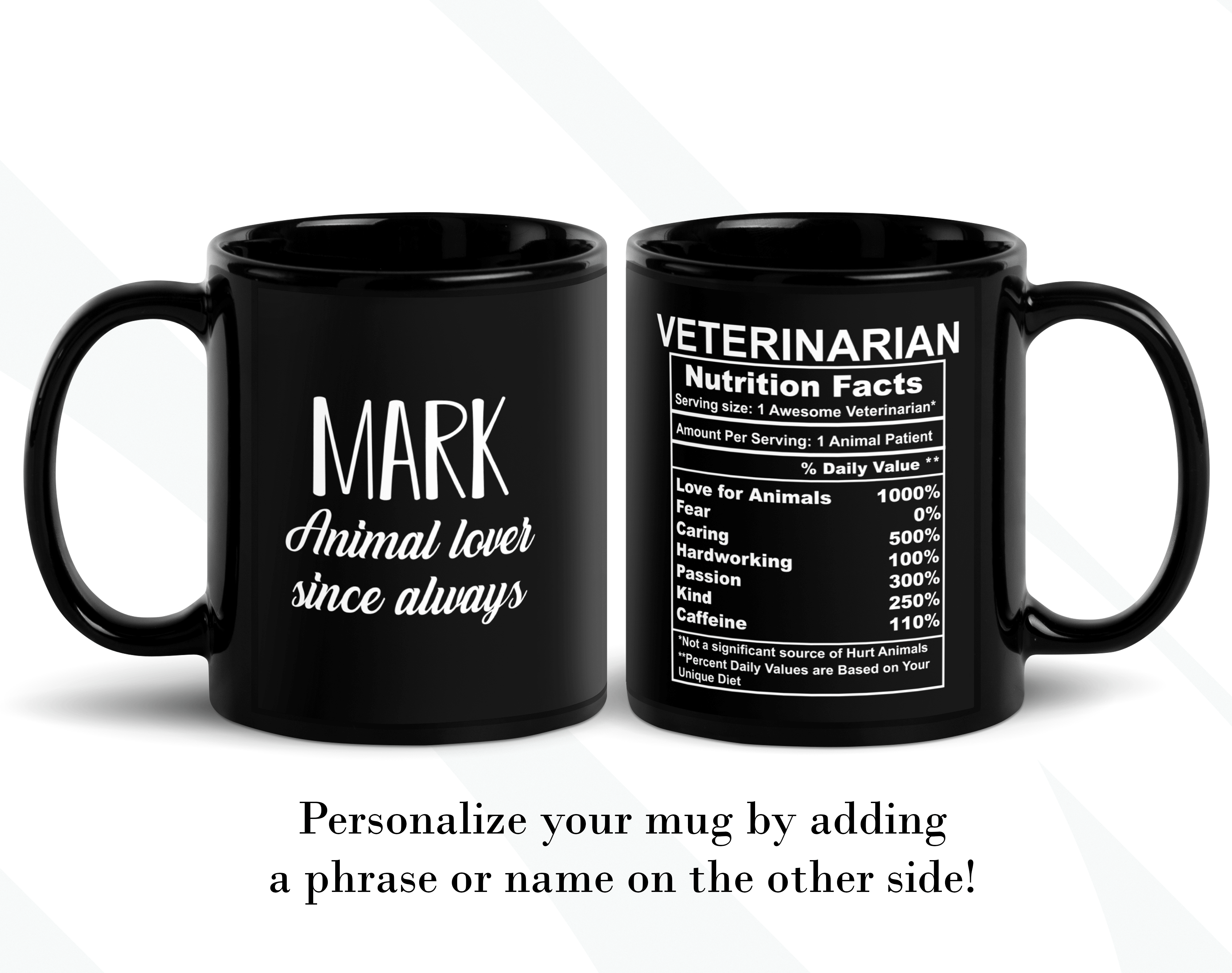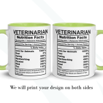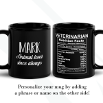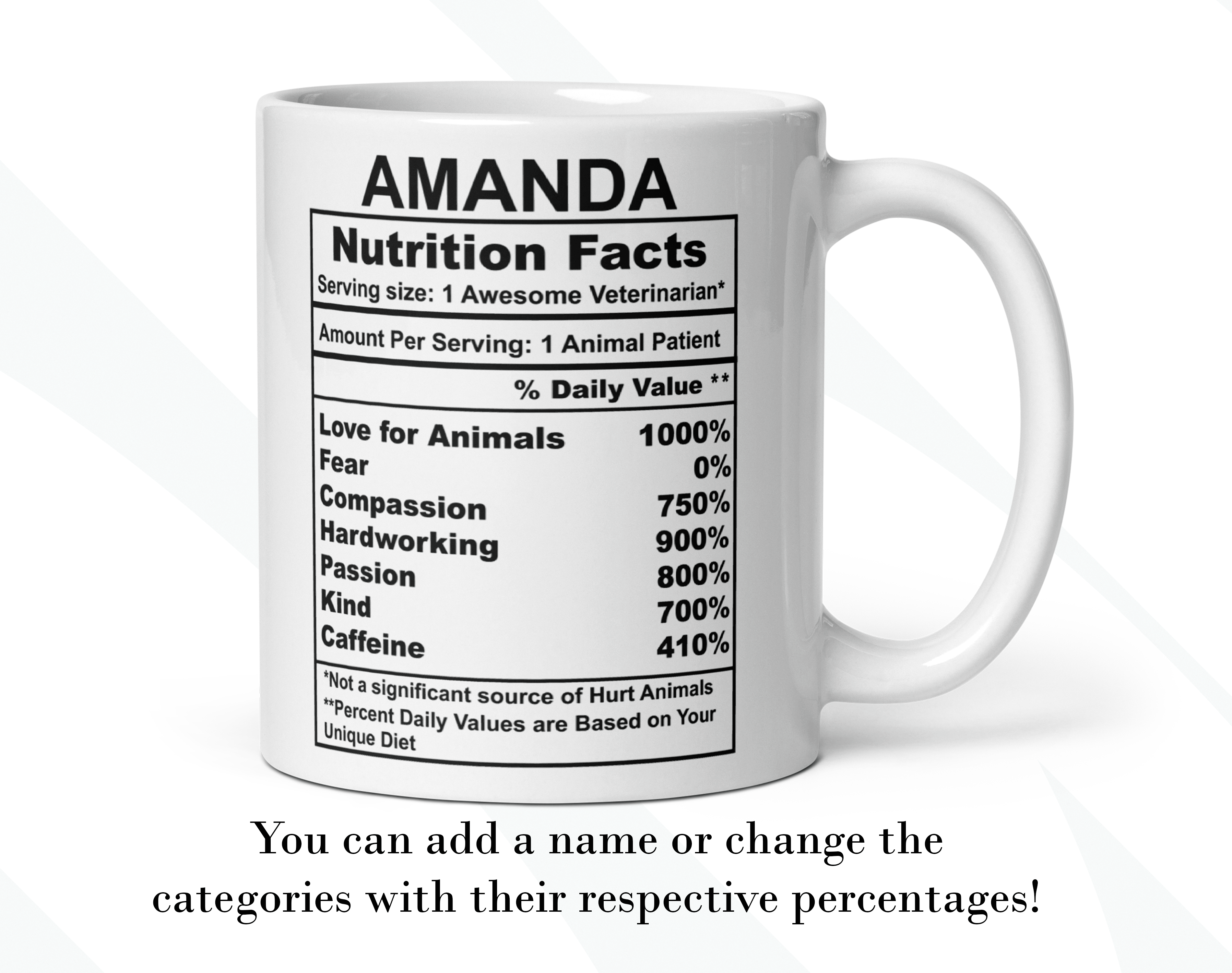This veterinarian nutrition facts mug is an excellent veterinarian gift! It could be given for birthdays or any other special occasion, making it a perfect gift! This custom gift will put a big smile on your loved ones every time they serve in their mug!