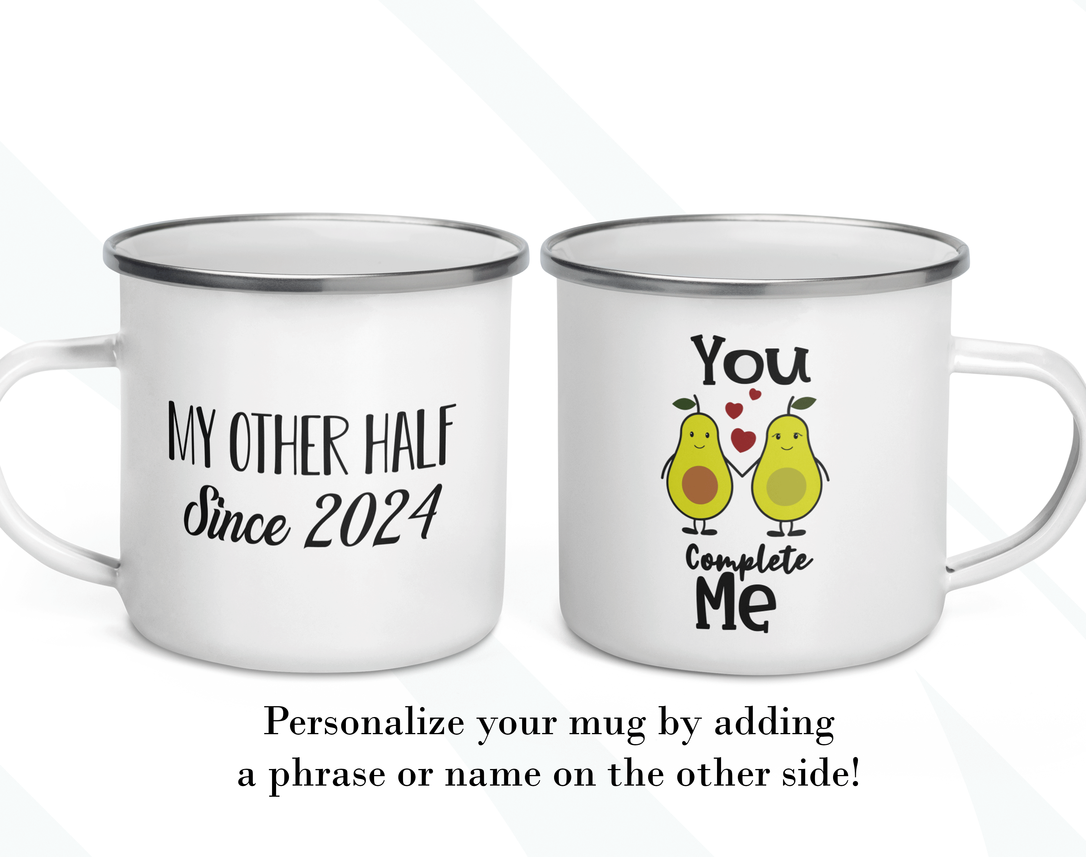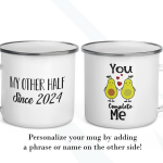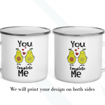 Our “You Complete Me” mug is an excellent, funny Valentine’s gift and perfect for all avocado lovers! It’s an ideal anniversary gift, birthday gift, or any other special occasion that will make it unique to you! This avocado mug will put a big smile on your person!