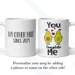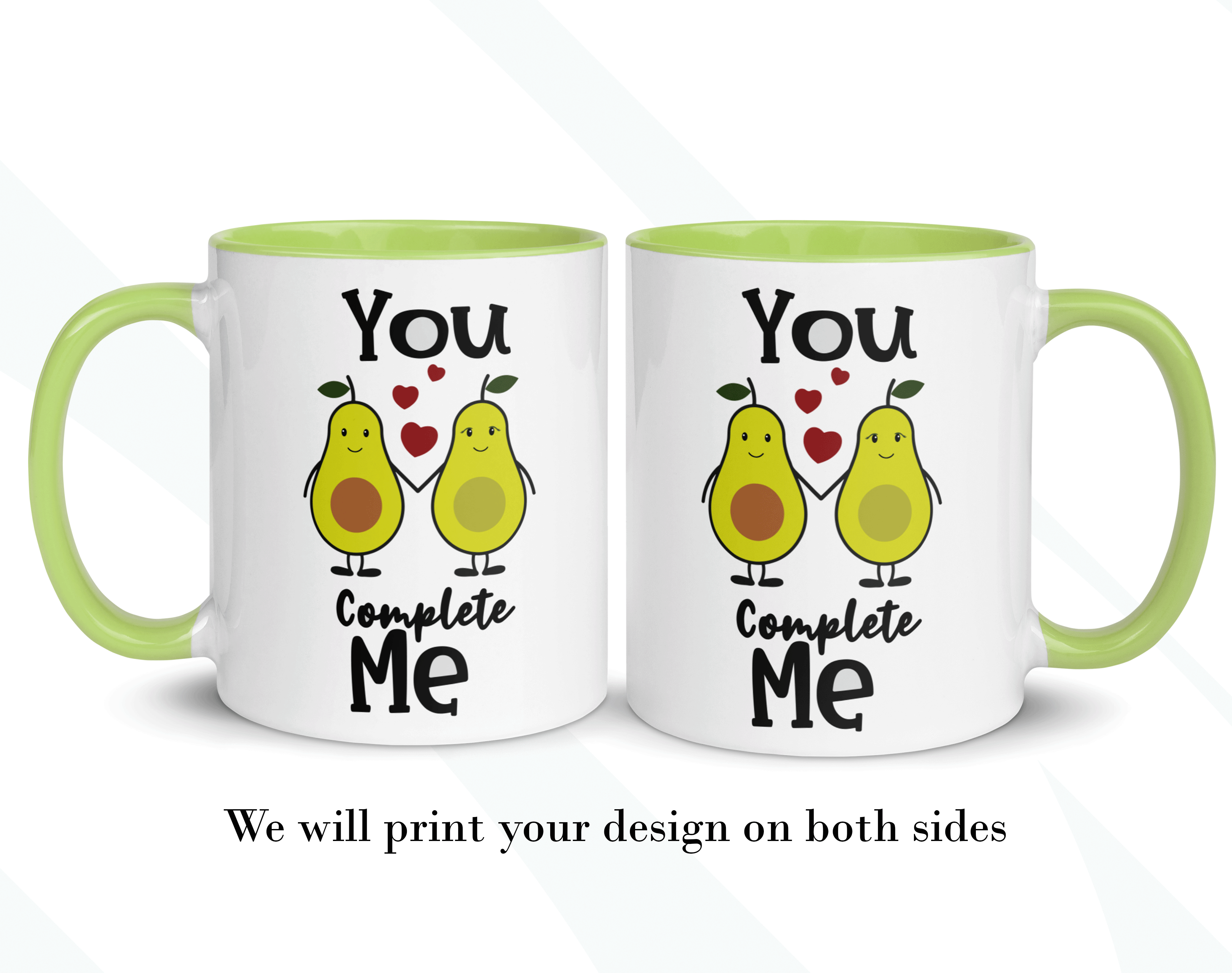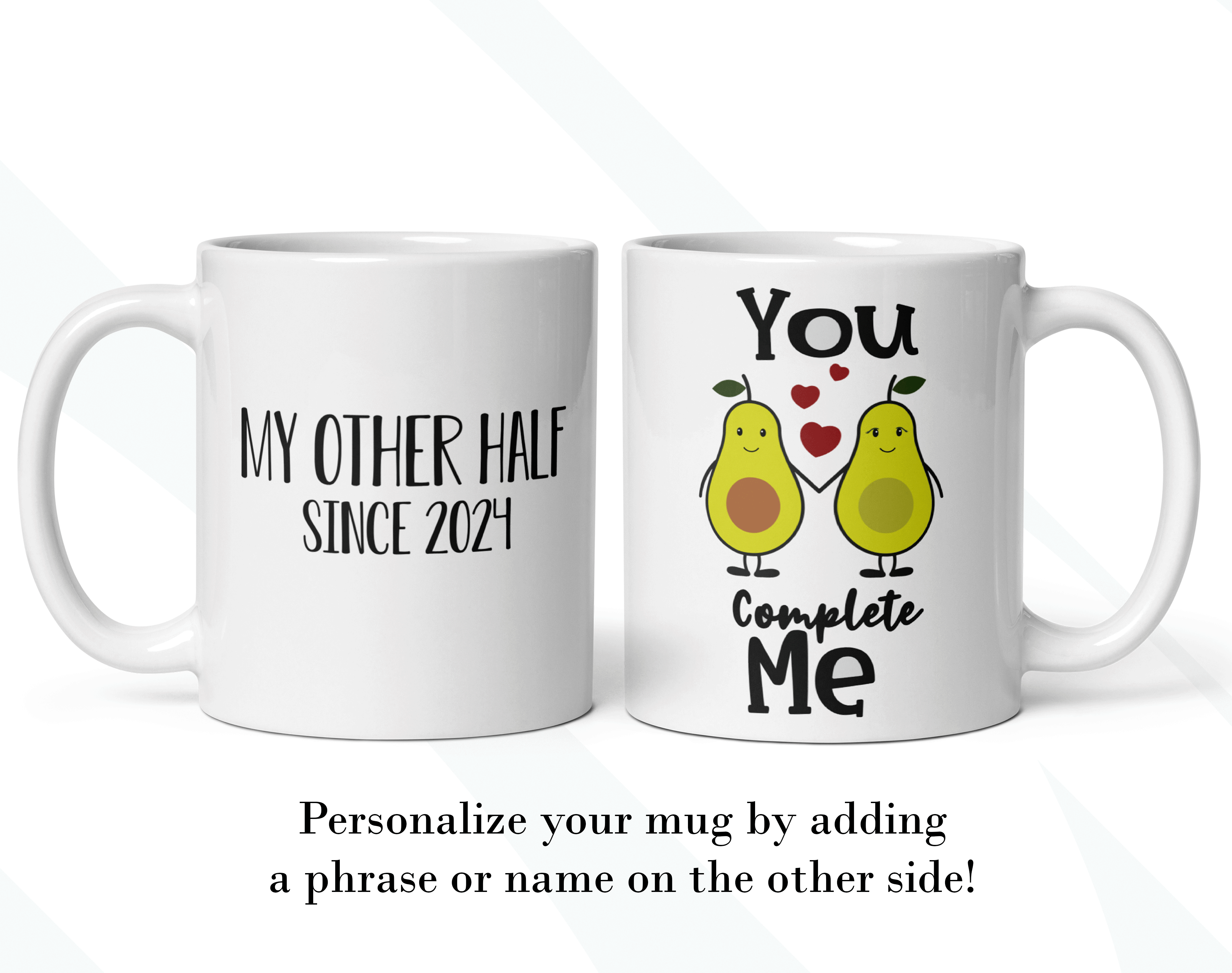 By default, we will print your personalized mug on both sides. You can add a name, phrase, or both, on the mug’s back, as in the pictures. And if you want to do so, please provide us with as much information as possible in the personalized text box; we will take care of the rest. It’s your customized mug, so you get to design your couple’s mug as you wish!